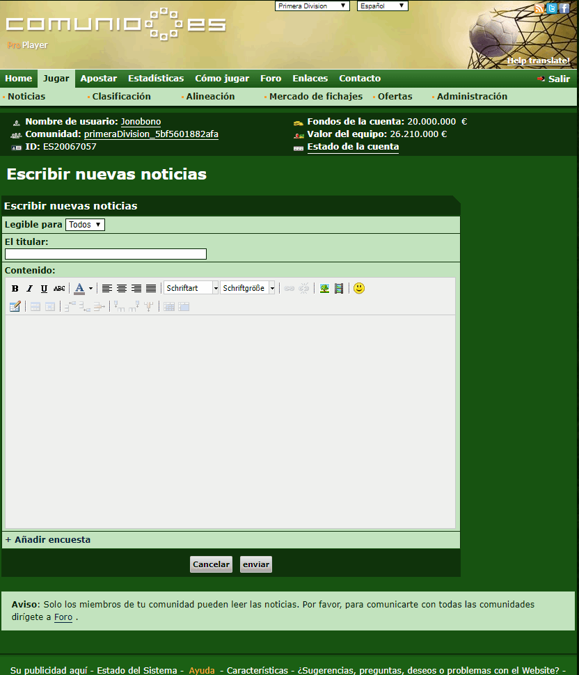 ¿Palabras no son suficientes? ¡Entonces prueba tu mismo Comunio.es Pro Player con un acceso para invitados!